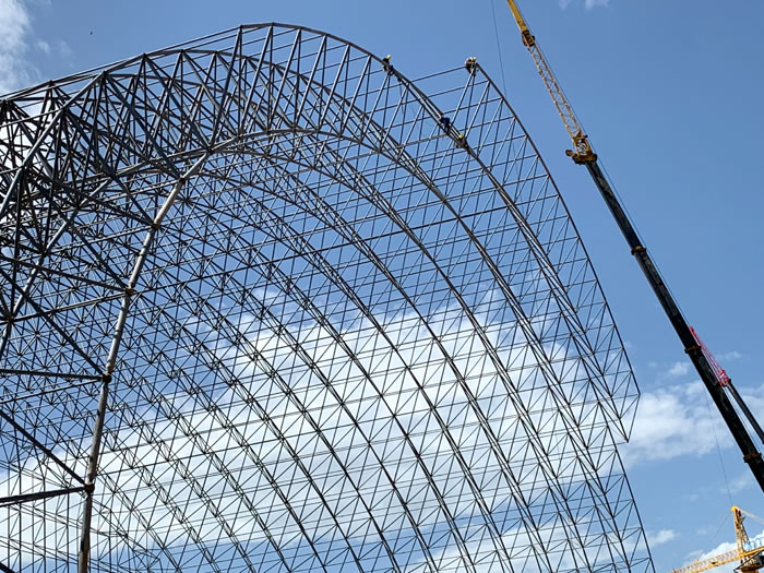 (2)网架加工前应对现场尺寸进行复测,确认无误后方可进行加工、安装;网架制作、运输、安装应遵守《空间网格结构技术规程》JGJ7-2010、《钢网架韶山螺栓球节点》JG/T 10-2009、《钢网架韶山螺栓球节点用高强度螺栓》 GB/T 16939-2016、《韶山钢结构韶山工程韶山施工规范》 GB50755-2012、《韶山钢结构韶山工程施工质量验收标准》 GB50205-2020。